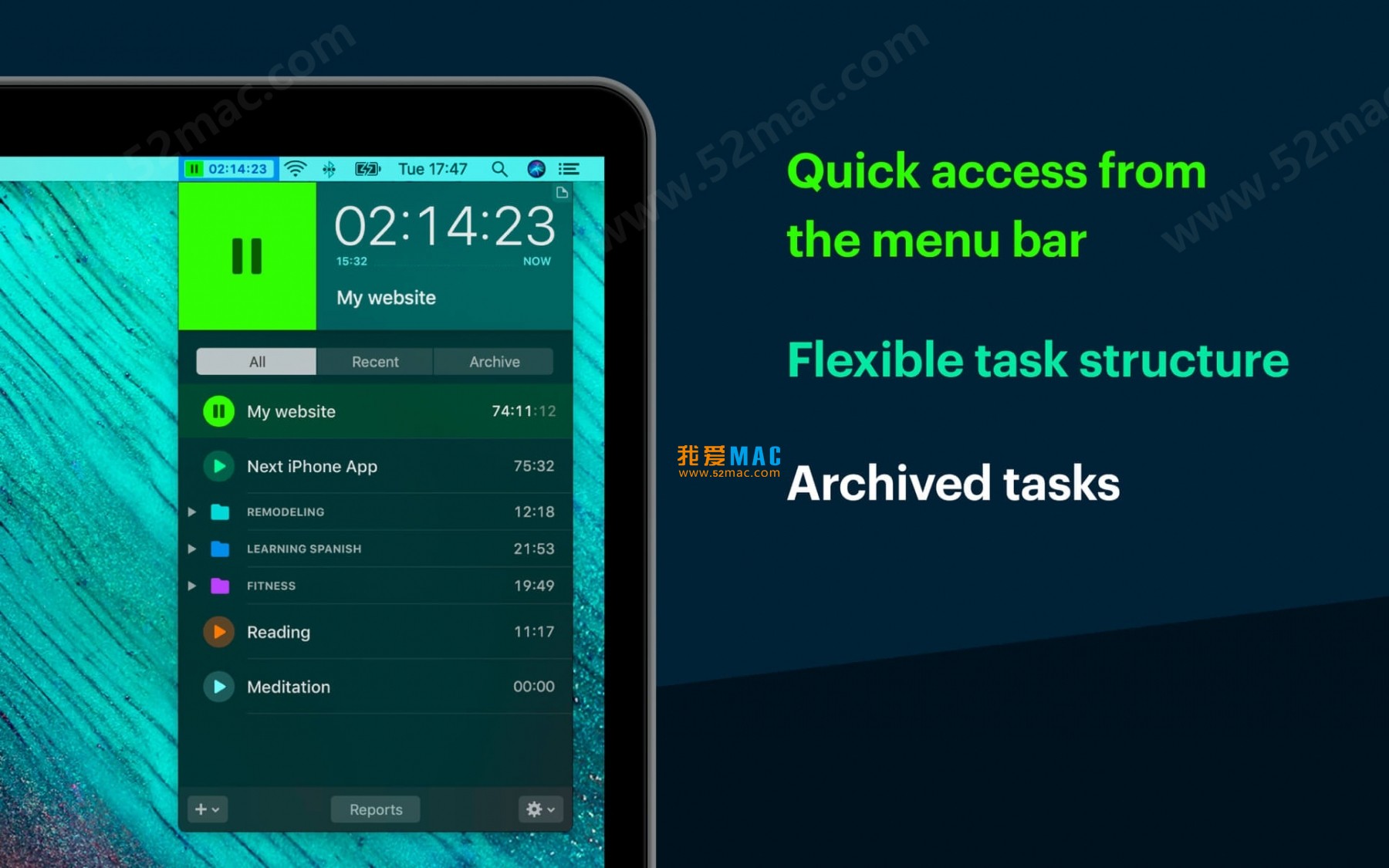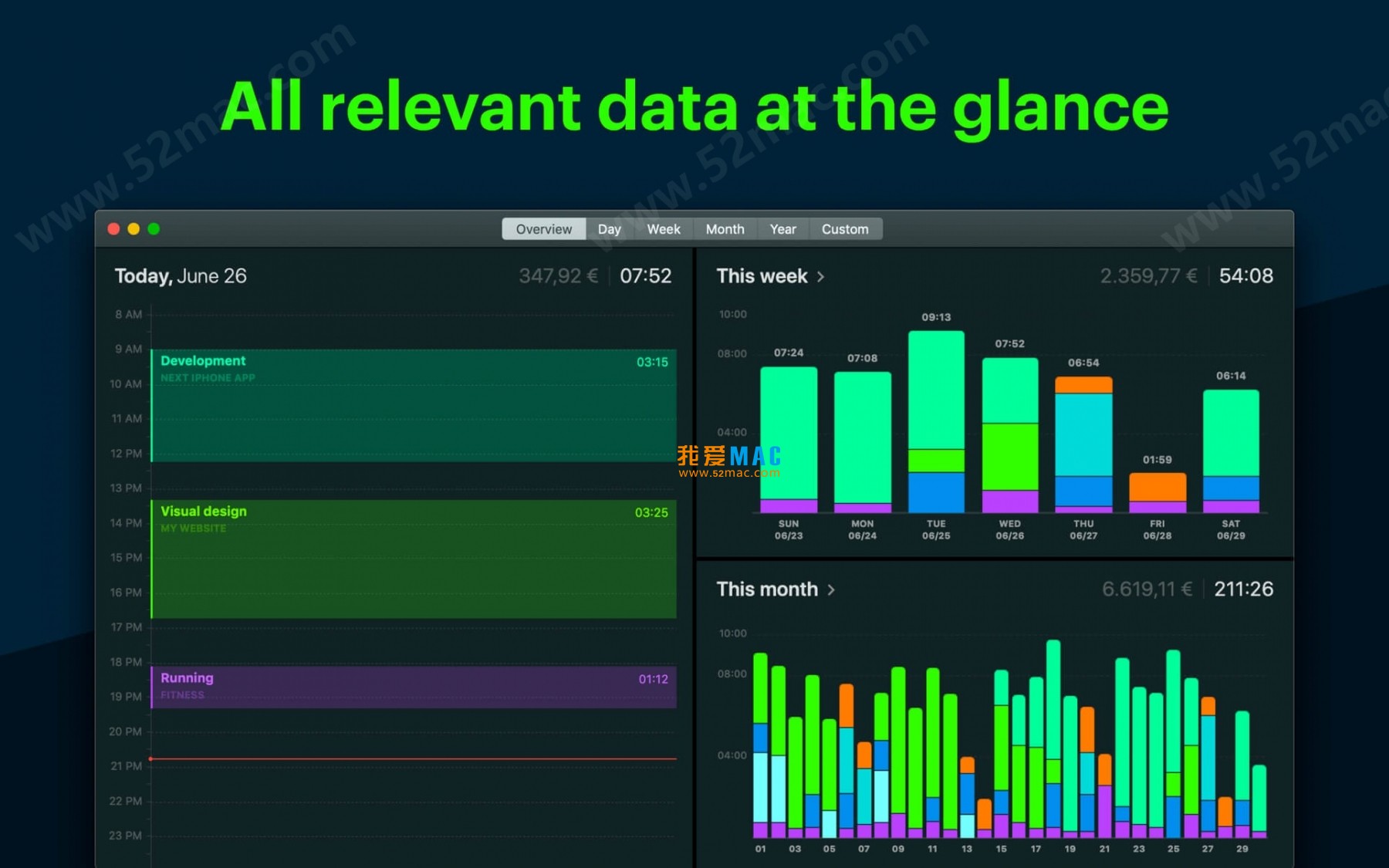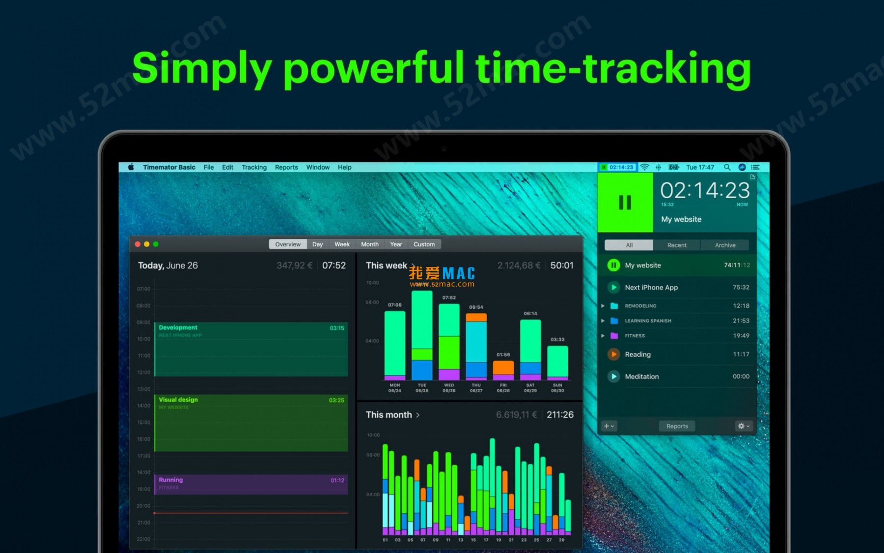 Timemator for Mac 提供了一个强大、美观而又简单的时间追踪功能,为任何想要记录工作时间和收入的专业人士提供了一个强大的时间追踪功能。